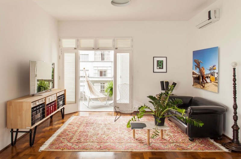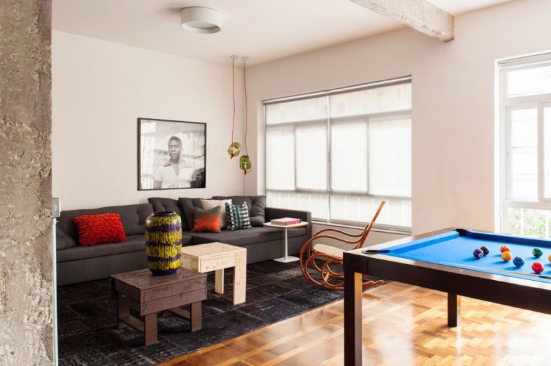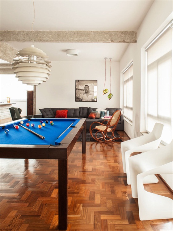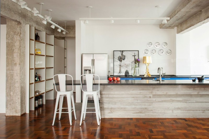 這間公寓位於巴西聖保羅,由Mauricio Arruda Arquitetos & Designers設計。公寓的設計十分簡潔時尚,柱子和梁體被設計師刻意裸露在外,粗狂的混凝土結構與室內舒適的裝飾風格形成鮮明的對比。軌道射燈、隨處可見的DIY家具、鐵製的吧椅等元素更增添了室內空間的工業氣息。
