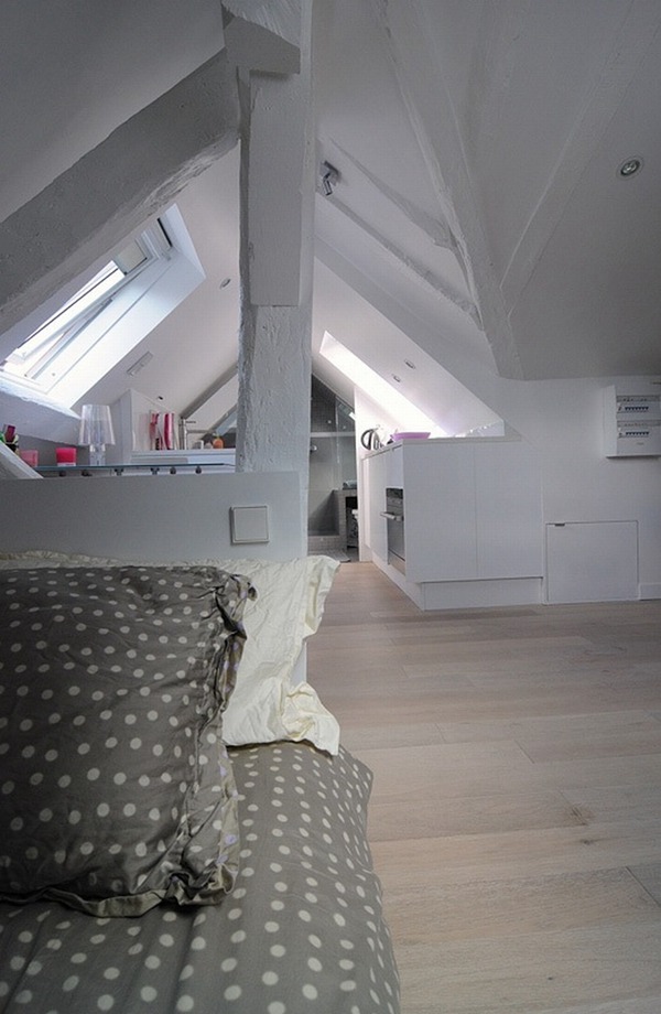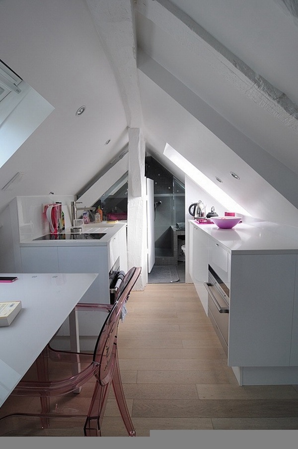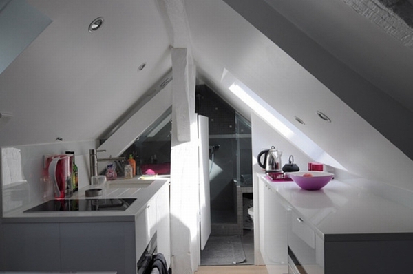 這是一間位於巴黎的住宅頂層閣樓,僅有16㎡的麵積且狹長。設計師巧妙的把它打造成了一個全功能型的住宅,臥室、廚房、影音、工作區、衛生間、淋浴、洗手台、洗衣機等一應俱全。