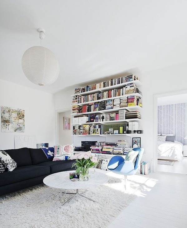 在日積月累中,家裏的書也會逐漸增多。為了給它們一個更好的收納之地,我們不得不需要重新開辟看書和儲書的空間。通過對客廳書架的合理擺放和巧妙安置讓家中擺脫淩亂,為你營造一方愜意讀書角,一個大大的書架會使你的客廳增添不少姿色,不過書還是要用來讀的,純裝飾便失去了意義。