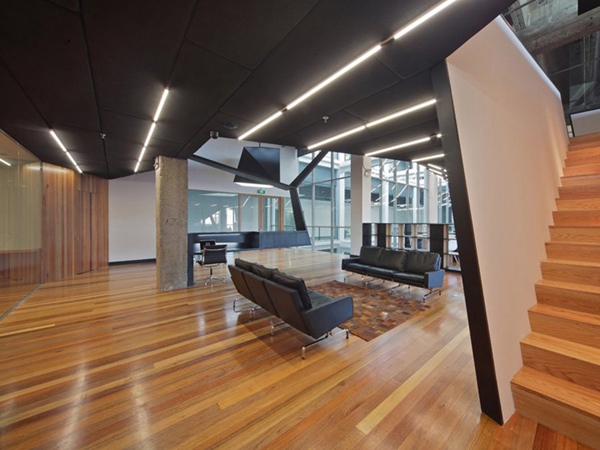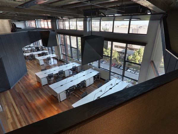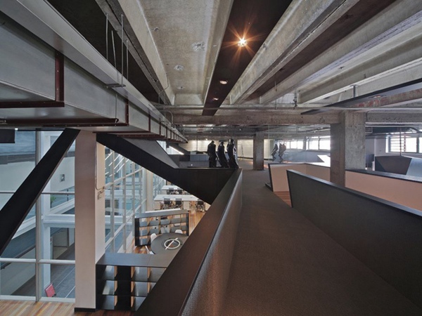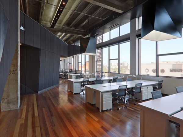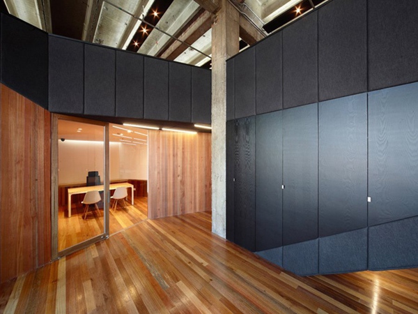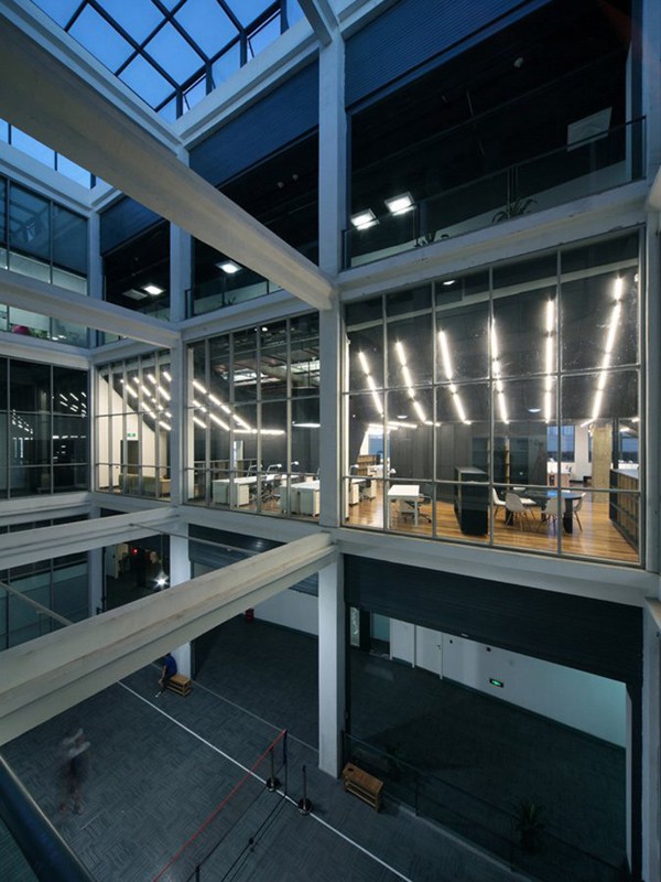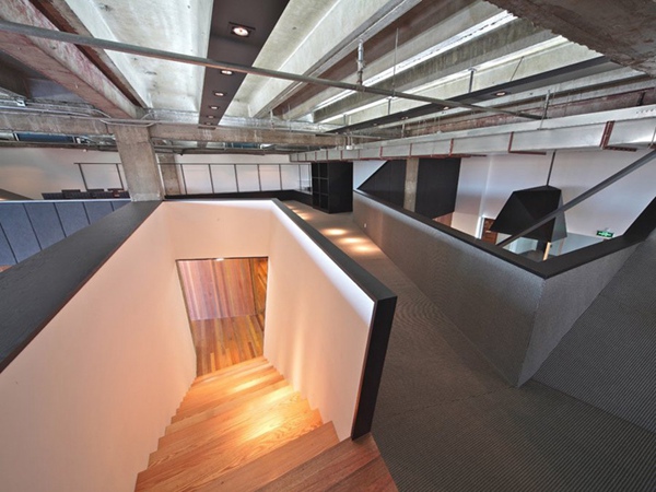 這座750平米的工業大樓,是時尚品牌BGO在上海的辦公總部與展廳,位於上海鬧市區的一個老工業建築內。室內由Byn設計事務所設計,建築內部以黑色、白色和實木色為主色調,中層6米挑高的部分作為展廳,而辦公室、會議室和接待廳則位於低層。