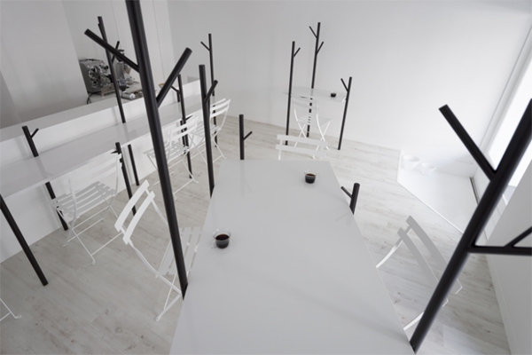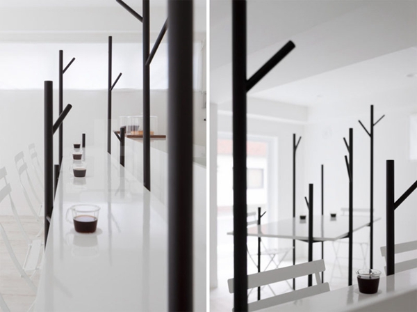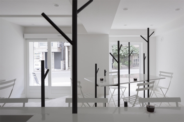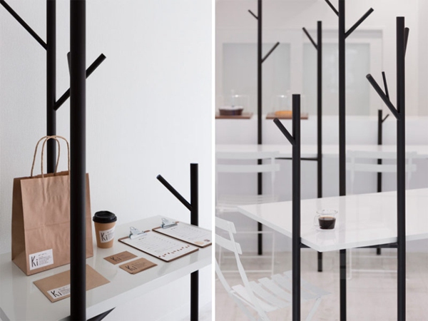Ki cafe 創意咖啡廳坐落在日本東京都世田穀區,由ID設計事務所設計。Ki cafe與我們以往接觸的咖啡廳有所不同,這是間內部設計十分簡約、素雅的咖啡廳,室內以黑白灰為主色調,由LOGO演變過來的樹木造型是裝飾空間的主要元素,咖啡桌則用樹的造型來支撐,而且還可以掛衣帽或手提包。如此素雅的咖啡廳對於放鬆身心是不是別有一番情趣呢?!