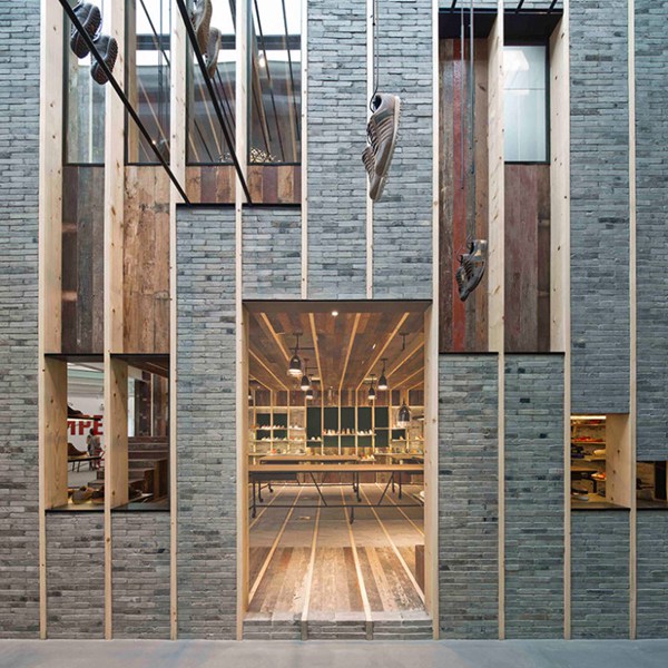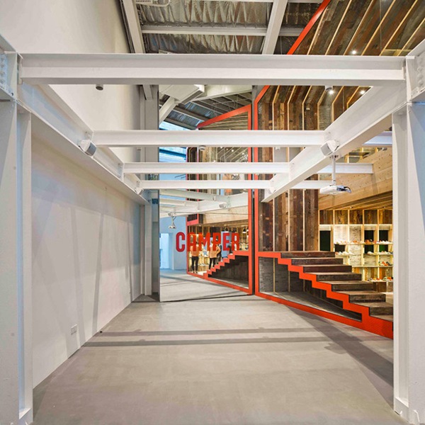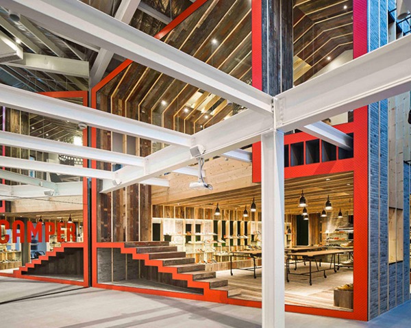 Camper位於上海的品牌展示廳和辦事處由如恩設計研究室設計,將上海本地文化元素和文化背景融入了室內設計中,在建築的內部有一個狹窄的街道以及老式的儲存倉庫,這樣的設計旨在喚起每一位前來光顧的顧客心中的那個“老上海”。