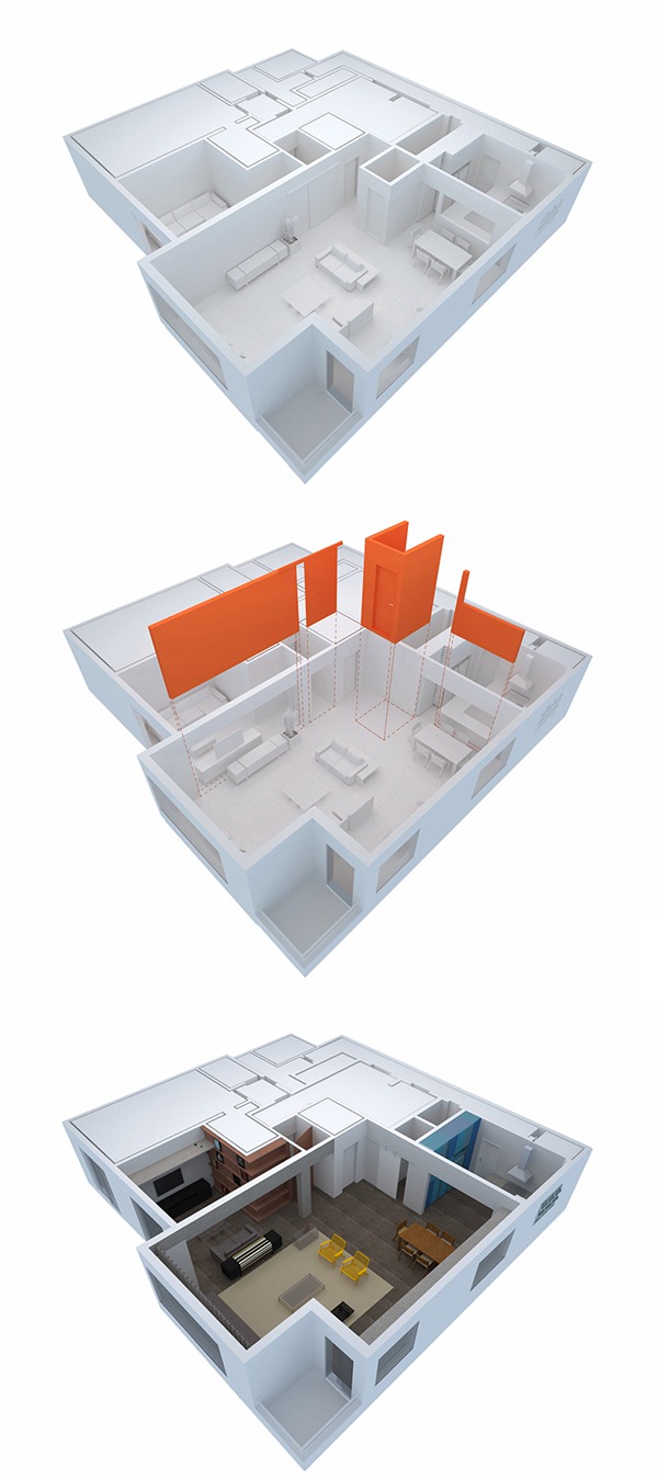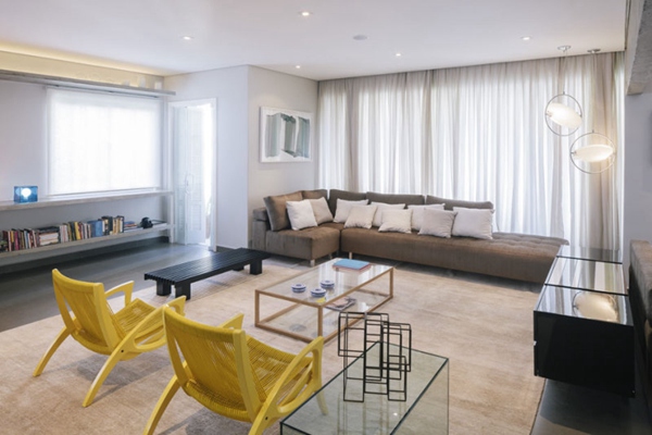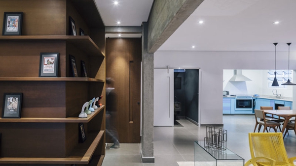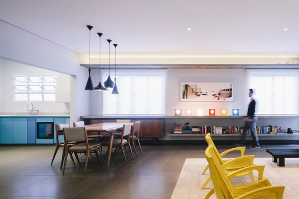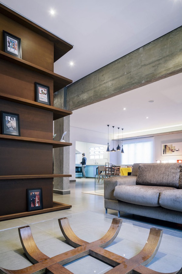 這屬於一個空間改造的項目,是在原建築空間中改造出來一個獨立的單身公寓,該項目是由建築師Flávio Castro設計。這間公寓擁有一個足夠大的客廳空間,影音室、六人餐廳和一個獨立廚房,室內設計風格時尚溫馨,整體灰色調的搭配給人一種靜怡沉思的感覺,而刻意裸露的鋼筋混凝土柱子和梁體又凸顯了其個性、張揚的一麵。