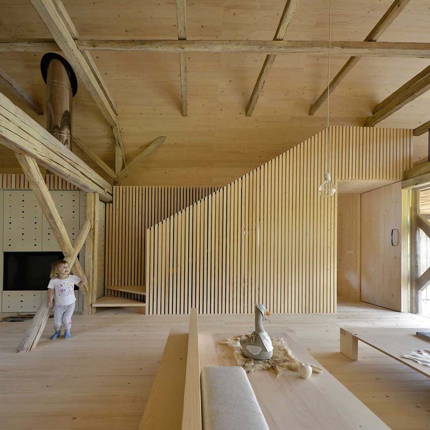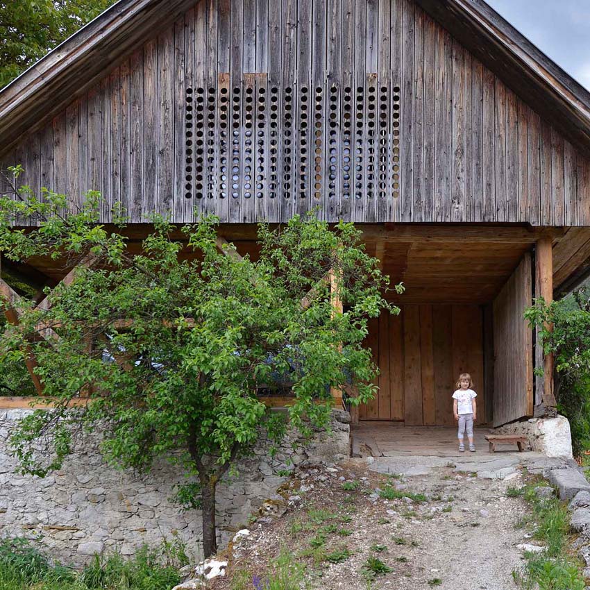 OFIS Arhitekti的斯洛文尼亞工作室在阿爾卑斯山將破舊的舊牲口穀倉改造成度假小屋,名為Alpine Barn Apartment(高山穀倉公寓),改造後的穀倉,分為上下層,為客人提供一個僻靜的地方。