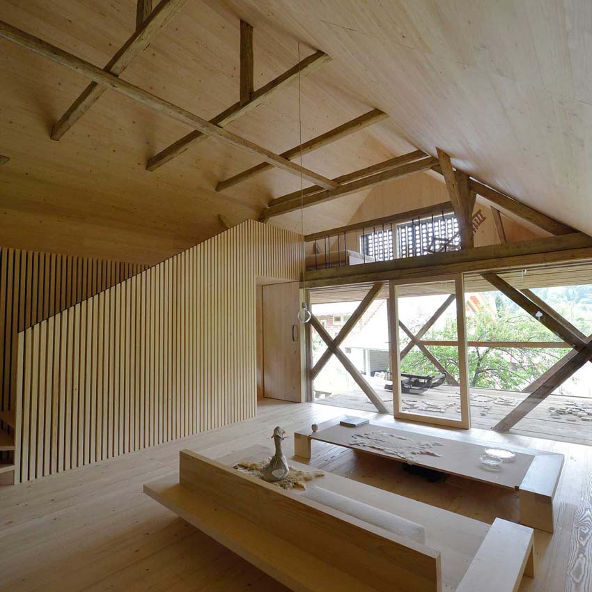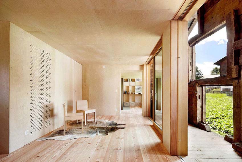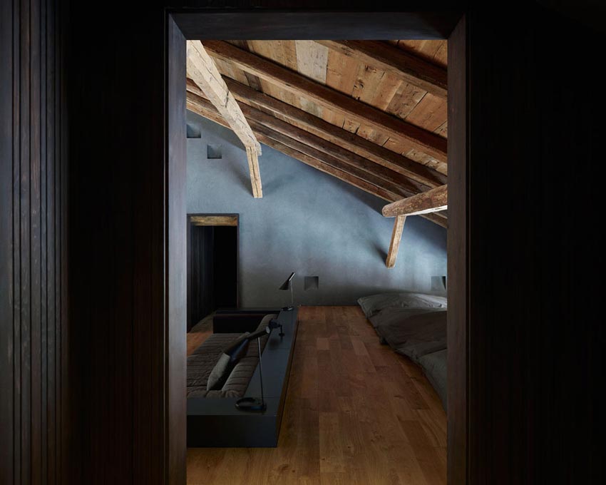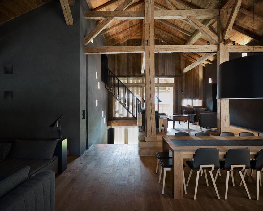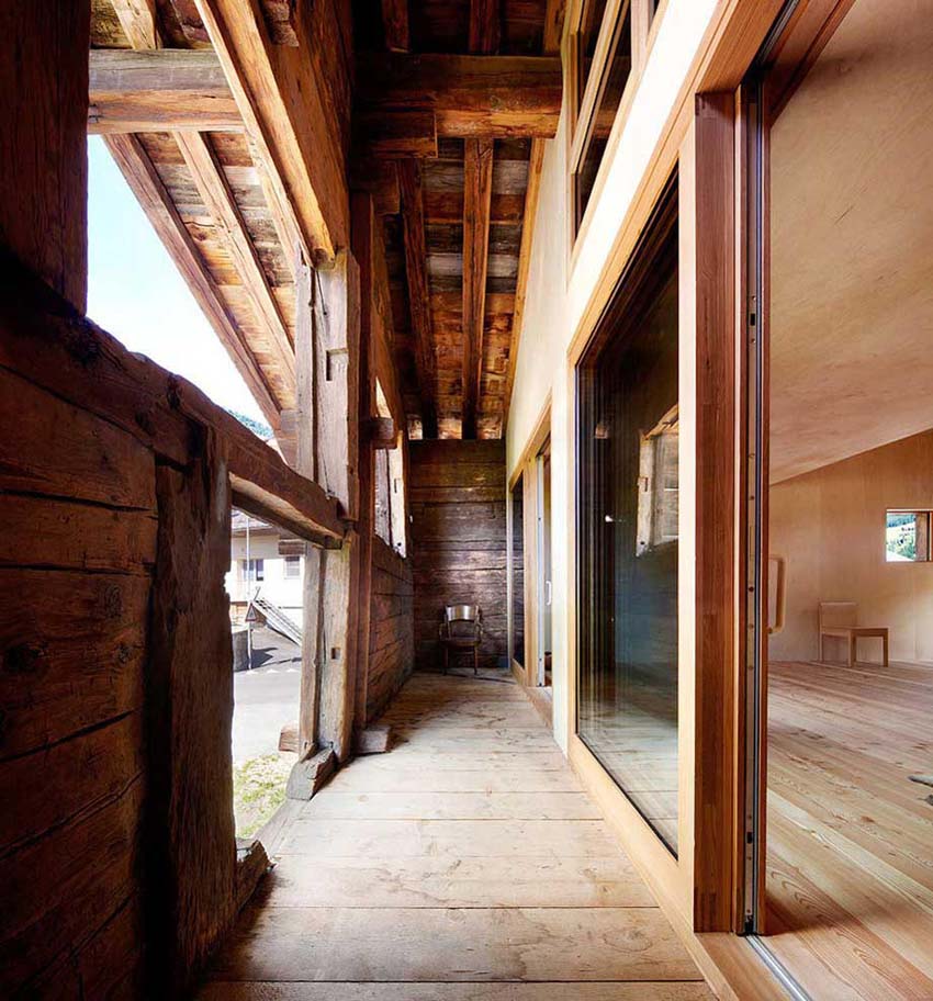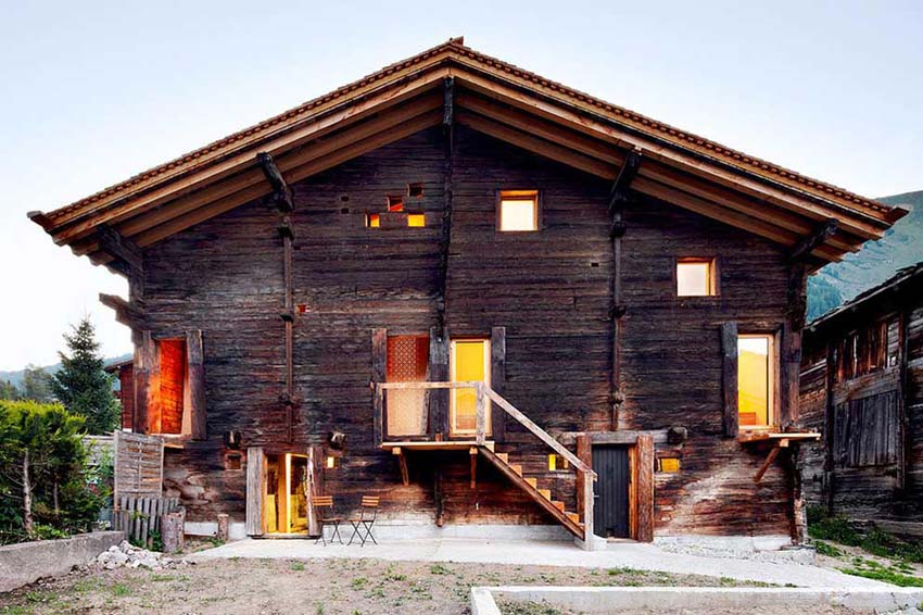 蘇黎世總部的Marianne Julia Baumgartner 和 Luca Camponovo設計團隊改造了這間百年曆史的幹草穀倉,改造後的穀倉化身為現代住宅,如同當地大部分的建築,這個穀倉也是受保護的遺產。設計團隊要在不破壞它外立麵的情況下將穀倉分隔成兩個區域,未經處理的、自然風化的表麵使這個現代住宅,格外的特別。