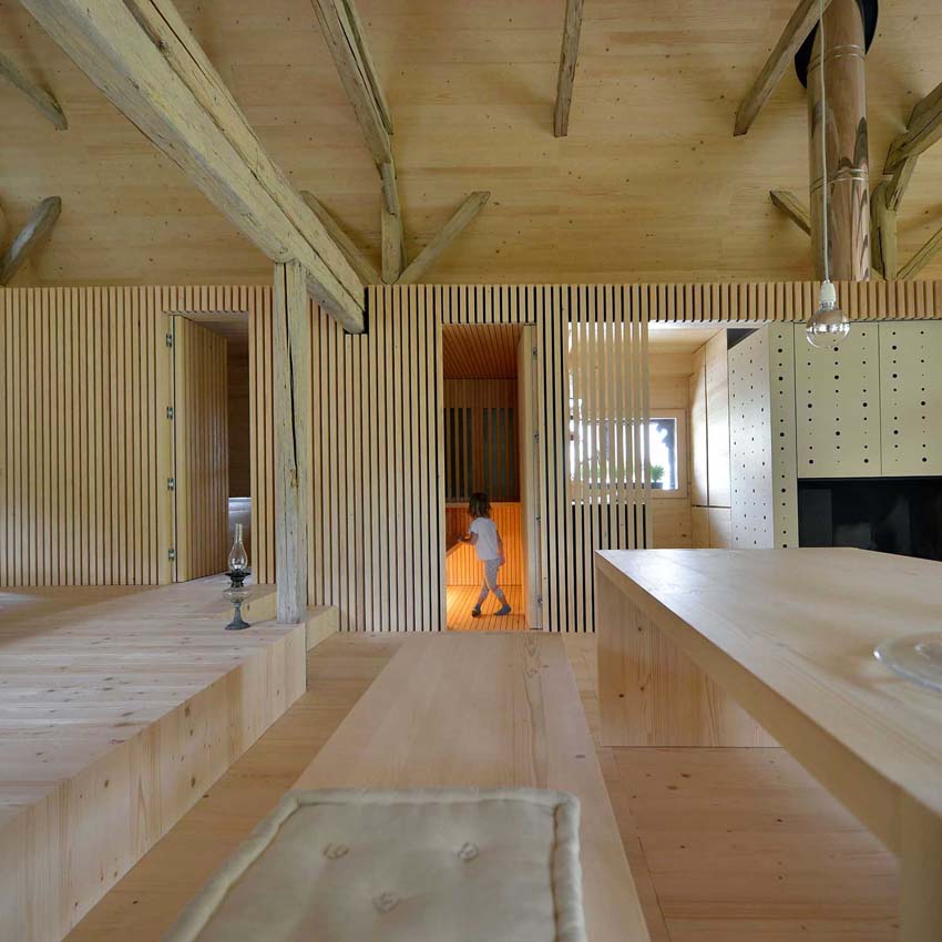 JKA 建築師 和FUGA 設計師們重用高山木工技術將法國村莊的傳統農舍改造成一個舒適的現代別墅。