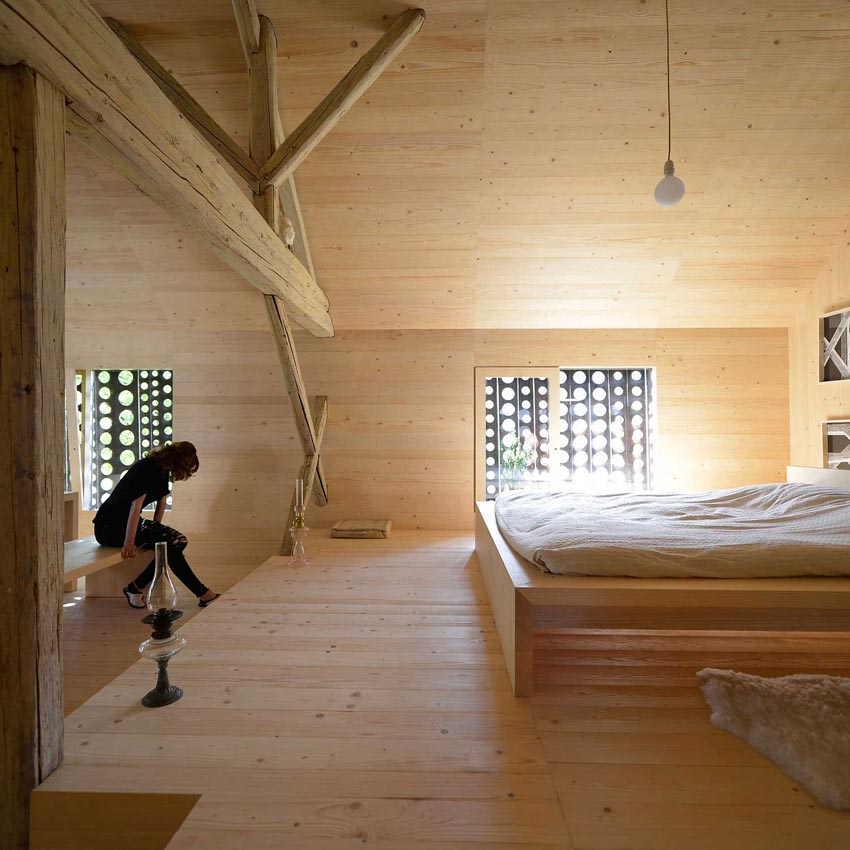Rote Scheune,穀倉改造成假日公寓的設計案例,設計團隊保留原有的結構和所有農村穀倉定義元素,總部位於柏林的建築師Thomas Kröger在改造內部時,選擇了木材和白漆的完美組合,保留下來的木梁向老建築的致敬,也成為了這棟住宅的特色之處。