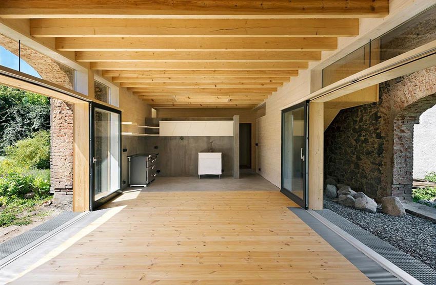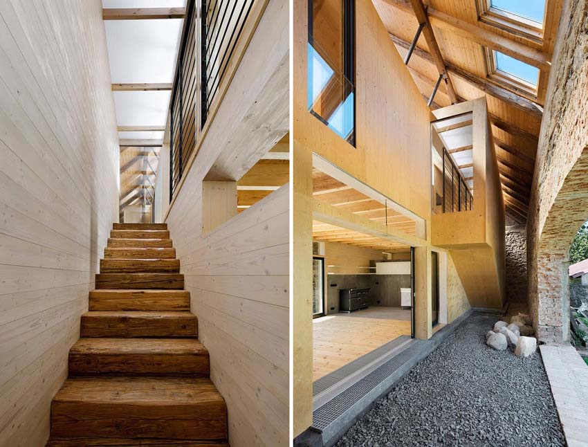 這間房子可以稱為屋中屋,在一個就穀倉內修建了一個住宅屋。老式的石頭結構被保留下來,這樣的設計反而提供了一個舒適的現代生活空間。房屋內外的許多風景將室內空間和室外空間連接起來,新老結合的共生關係。