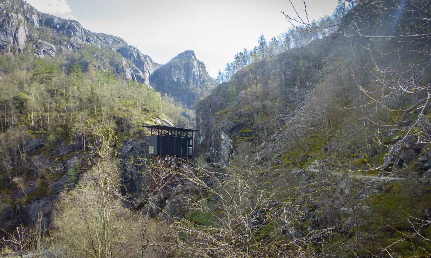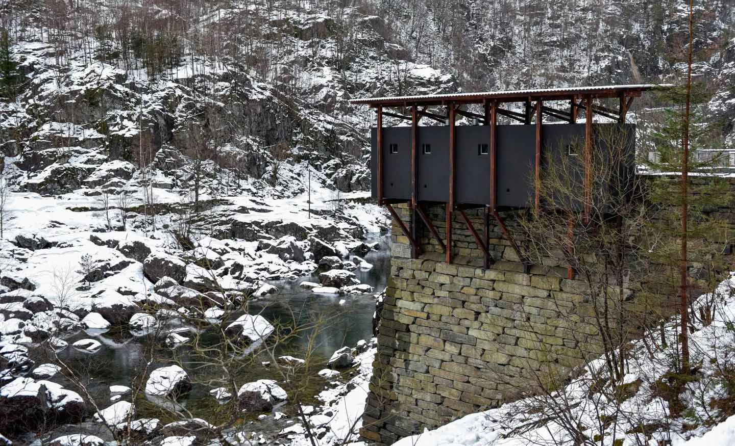 挪威羅加蘭郡賽於達自治區的Allmannajuvet 山是一座鋅礦山,從1881年開發到1899年,最後就被廢棄。1881至1899年間,大約采了12000公噸鋅礦石,現如今被規劃為礦區博物館。這棟位於峽穀邊的簡單建築就是礦區博物館的展廳,工業的結構風格和它要呈現的曆史對應,遠遠望去如同森林小屋,完美的融入Allmannajuvet 的自然風景。
