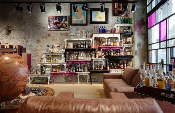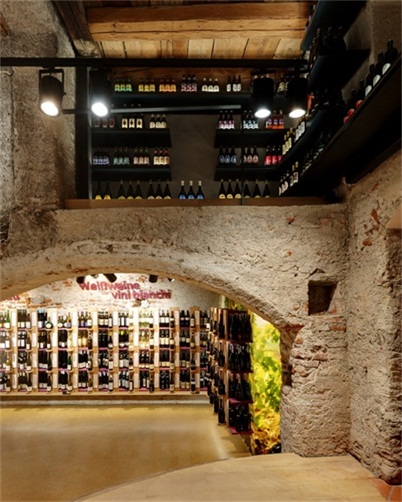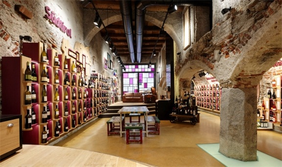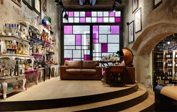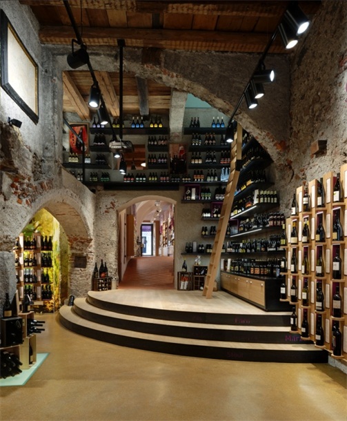 這家飲料店位於意大利魯內克地區,建築麵積為170㎡,由Monovolume Architecture + Design設計完成。為了將飲料店打造成集放縱和開會於一體的場所,建築師對商店的前部和後部采用了不同的裝飾風格:前部擁有傳統街角商店所具有的激情和放縱;後部的老建築則更多地體現了與現代觀念的融合,有種“粗糙豪華”的意味,給人以鬧中取靜的感覺。設計師將破舊的牆壁和家具巧妙地變廢為寶,並通過一條“紫線”將儲物櫃、牆壁、窗戶等整個空間連為一體,看上去高貴而典雅。