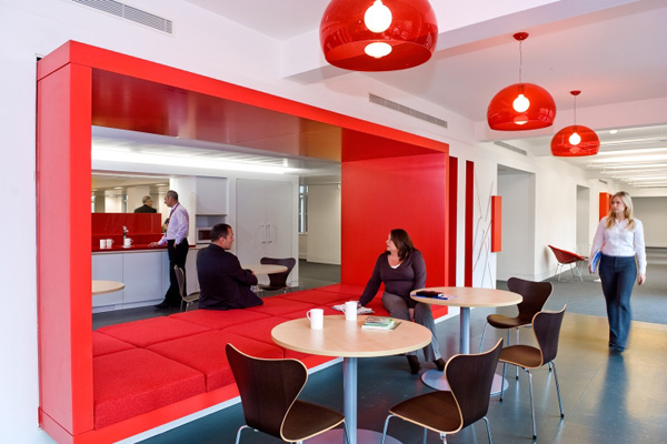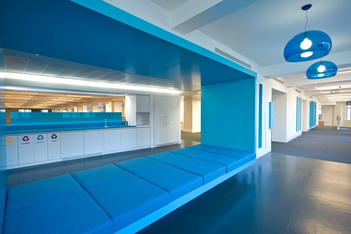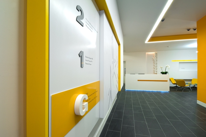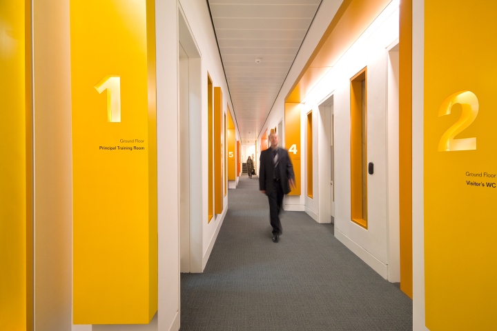 HKR事務所為這個超大型的辦公室注入了友好的導視係統和鮮明的色彩,靈活的空間布局和多層次的立體導引,整個空間給人清晰明朗的感覺。空間分區上主要包括非正式工作人員休息區、可容納600人的全開放式工作區、會議室、接待區、辦公係統設施、培訓套房和一個大的IT數據中心。