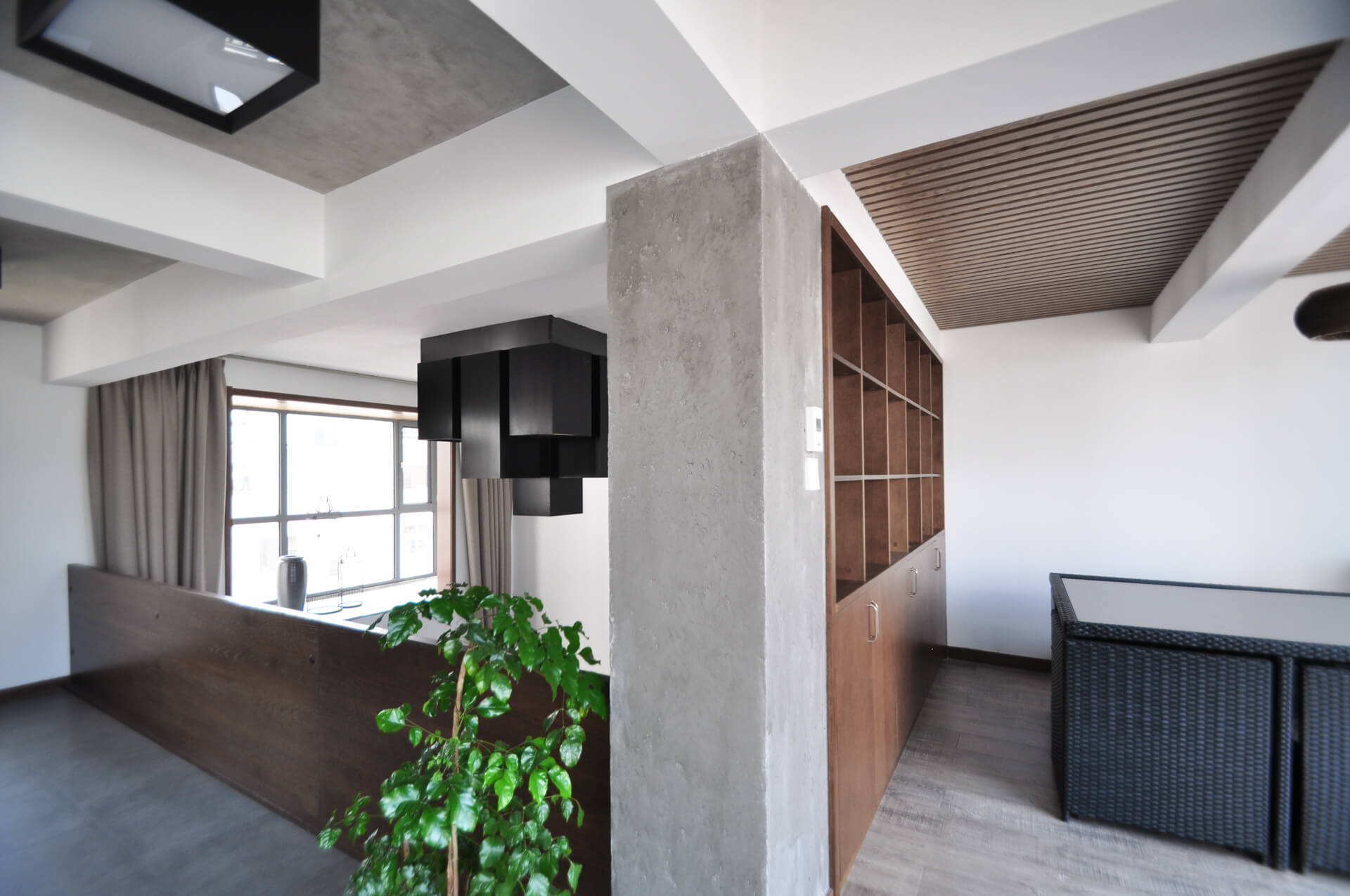 The apartment is in a 90s-residential district in Kunming, Yunnan Province. Many years ago, the developer opened 2 standard unit layer to create a loft apartment, although the indoor area is very large, but the layout of the house is extremely unreasonable, many building and construction problems have been left behind. Designers aim to create a modern indoor space for a family of three generations to enjoy a comfortable life.