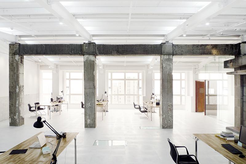 在這個延續、重組、再現的空間設計中,馬賽克和裂縫質感的材料層次,與白牆的嶄新交織出一種曖昧的凝視。褪色而帶有多次修補痕跡的舊水泥牆體與白色新牆體的並置創造了另一個層次的異質性。重工業感的電梯機房通過窗口展示成為事務所空間的一部分,延伸了時空感並創造了其自身的語境。壞損的橙紅色疏散門扇被移植作為事務所會議室的大門,使舊建築的元素得到尊重,煥發它旺盛的生命力。零壹城市建築事務所的空間設計,試圖在與空間功能吻合的職業建築設計和粗獷的原有非職業設計之間,創造一種辯證的對立關係。超越單一的設計風格,謳歌創作的不拘一格,這也是“零壹城市”的設計理念之一。